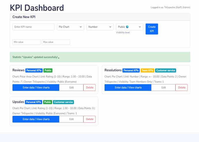 Create and manage custom Kpis for anything you want to measure. Visualize your data with beautiful, interactive charts and graphs